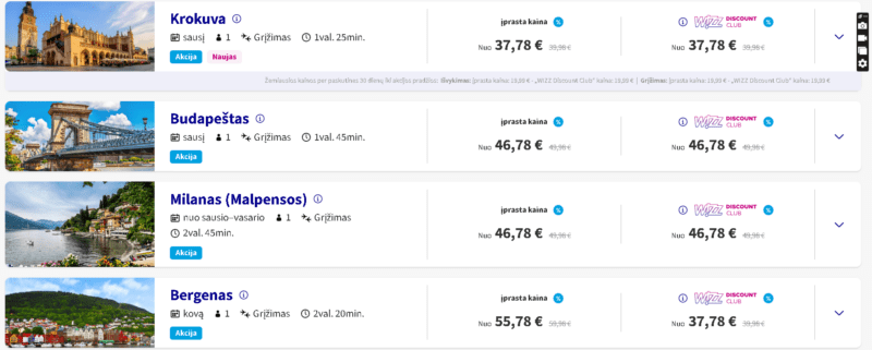 - Užsisakykite skrydį su “WIZZ Discount Club Standart” naryste ir mėgaukitės 10 eurų nuolaida skrydžiui bei 5 eurų nuolaida registruotam bagažui kiekvienos kelionės metu!