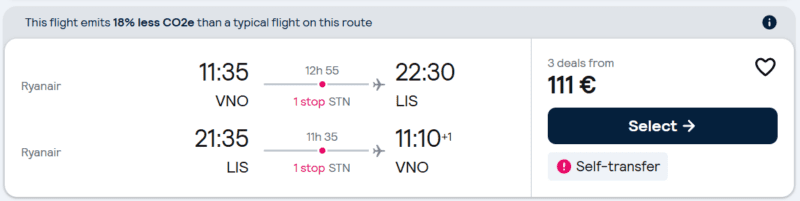 Skrydis atgal: Lisabona – Vilnius