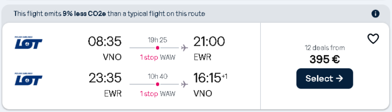 Skrydis pirmyn: Vilnius – persėdimas – Niujorkas