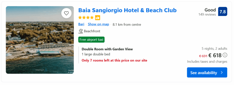 Hotel in Bari on the seafront with airport taxi included in the price from only €123 per night – for two people!