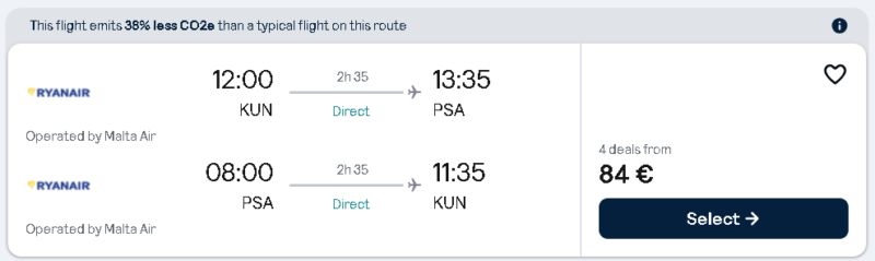 Skrydis atgal: Piza – Kaunas