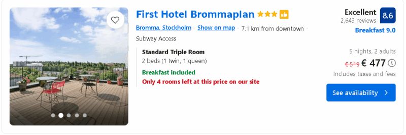 Viešbutis Stokholme, su įskaičiuotais į kainą pusryčiais, nuo 95€ už naktį – dviem asmenims!