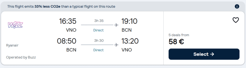 Skrydis atgal: Barselona – Vilnius