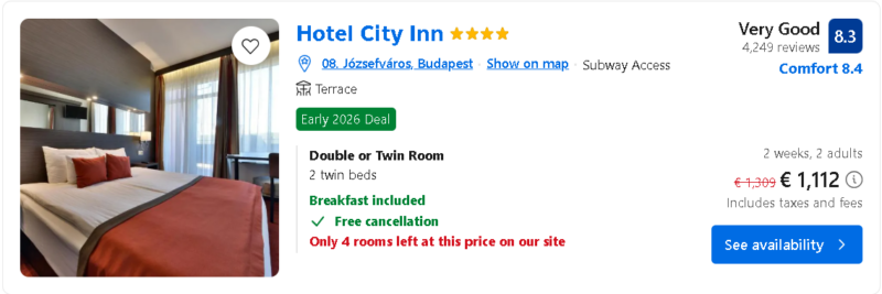 Viešbutis Budapešte centre, su pusryčiais, nuo 80€ už naktį – 2 asmenims!