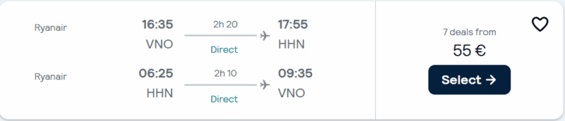 Skrydis pirmyn: Vilnius – Frankfurtas