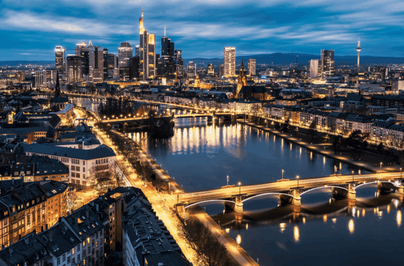 Frankfurtas – tai modernus Vokietijos finansų centras, garsėjantis savo įspūdingu dangoraižių horizontu, dėl kurio miestas neretai vadinamas „Mainhattanu“ (nuo miesto upės Maino). Čia susipina istorija ir šiuolaikiškumas: tarp stiklo bokštų slypi senoji Rotušė Römer, įspūdinga Frankfurto katedra (Dom), kurioje buvo karūnuojami imperatoriai bei žavus Senamiestis su siaurais, akmenimis grįstais skersgatviais.