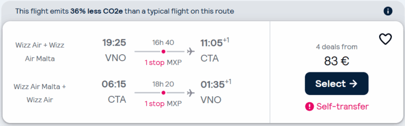 Kombinuoti skrydžiai iš Vilniaus į Kataniją nuo 83€ į abi puses!