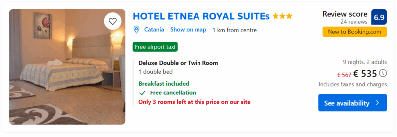 Viešbutis Katanijoje centre, su pusryčiais, nuo 59€ už naktį – dviem asmenims!