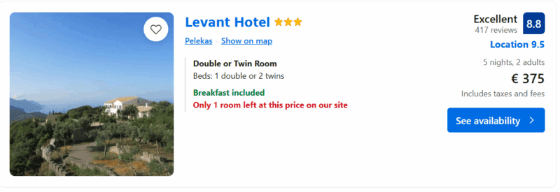 Viešbutis Korfu, su įskaičiuotais pusryčiais, nuo 75€ už naktį – dviem asmenims!