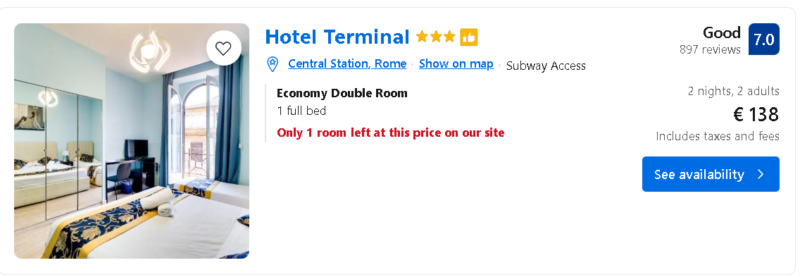 Viešbutis Romoje centre nuo 69€ už naktį – dviem asmenims!