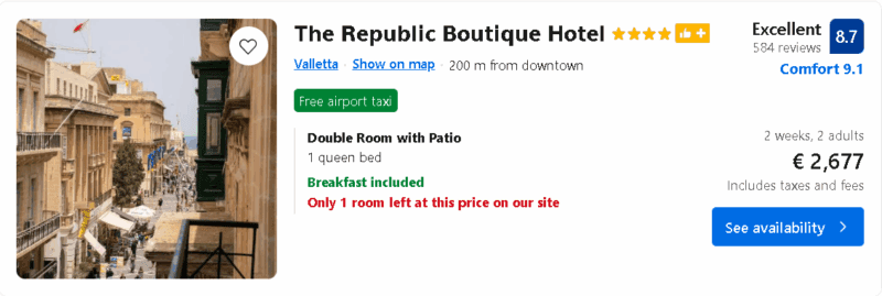 Viešbutis Valetoje centre, su pusryčiais, nuo 191€ už naktį – dviem asmenims!