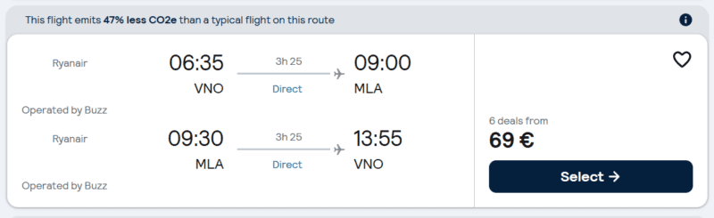 Skrydis atgal: Valeta – Vilnius