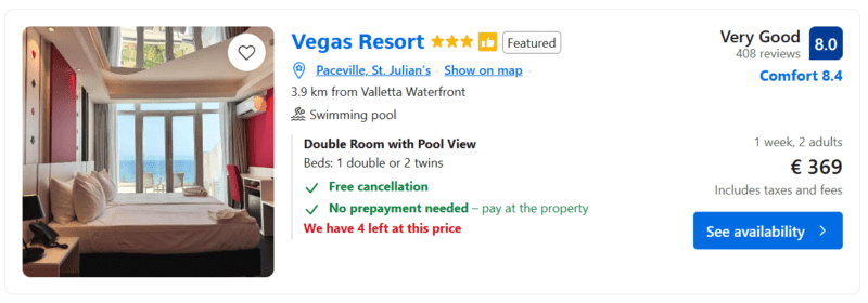Viešbutis Valetoje nuo 53€ už naktį – dviem asmenims!