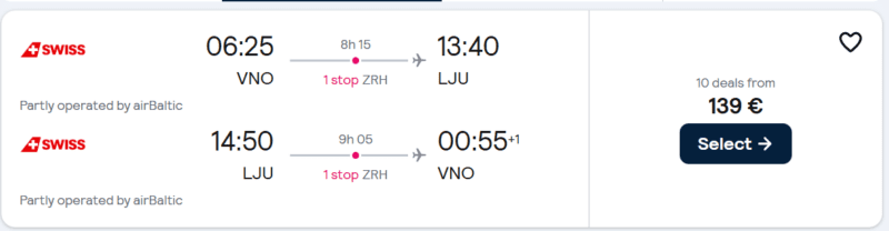 Skrydis atgal: Liublijana – Vilnius