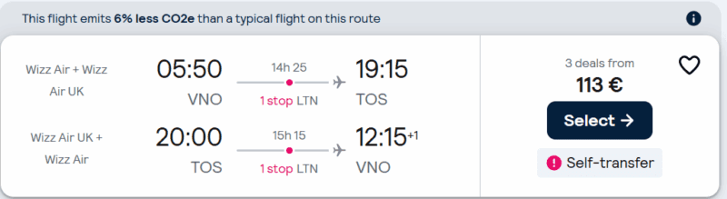 Skrydis atgal: Tromso – Vilnius