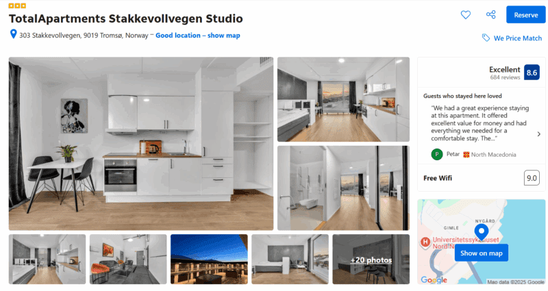 Tromsø – šiauriausias Norvegijos miestas, vadinamas „Arkties vartais“, įsikūręs tarp kalnų ir fjordų. Čia žiemą galima pamatyti šiaurės pašvaistę, o vasarą – patirti vidurnakčio saulę. Miestas garsėja jaukia atmosfera, gyvu kultūriniu gyvenimu ir nuostabia gamta. Tromsø jungia modernumą ir tradicijas – čia gausu kavinių, muziejų bei barų, tačiau už kelių minučių nuo centro galima patekti į laukinę gamtą.