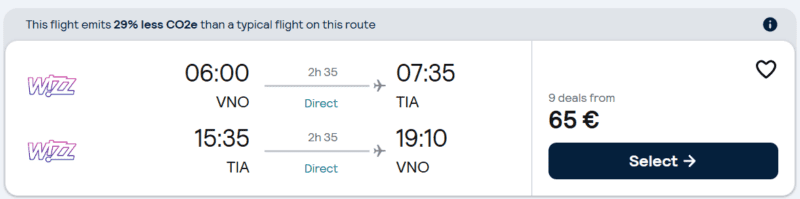Skrydis atgal: Tirana – Vilnius