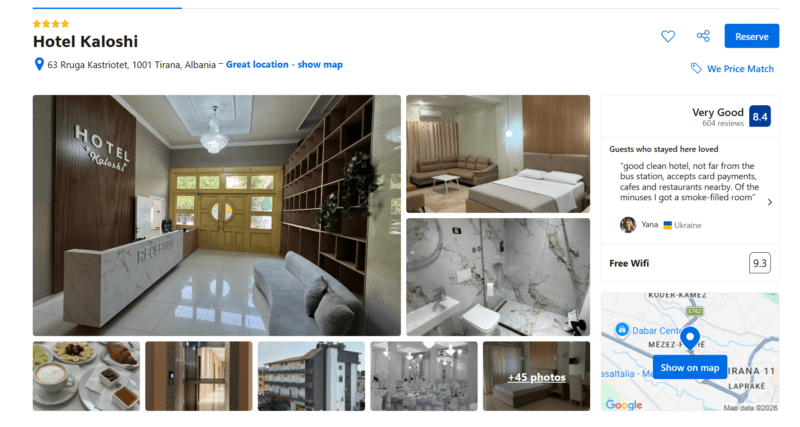 Viešbutis Tiranoje centre, su įskaičiuotais pusryčiais, nuo 58€ nakčiai 2 asmenims!