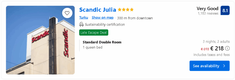 Viešbutis Turku centre nuo 72€ už naktį – 2 asmenims.